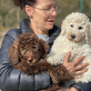 Meine Hündinnen Rosalie und Frieda unterstützen uns tierisch bei der Erziehung und Ausbildung, um das Ganze für die Welpen stressfrei zu gestalten.